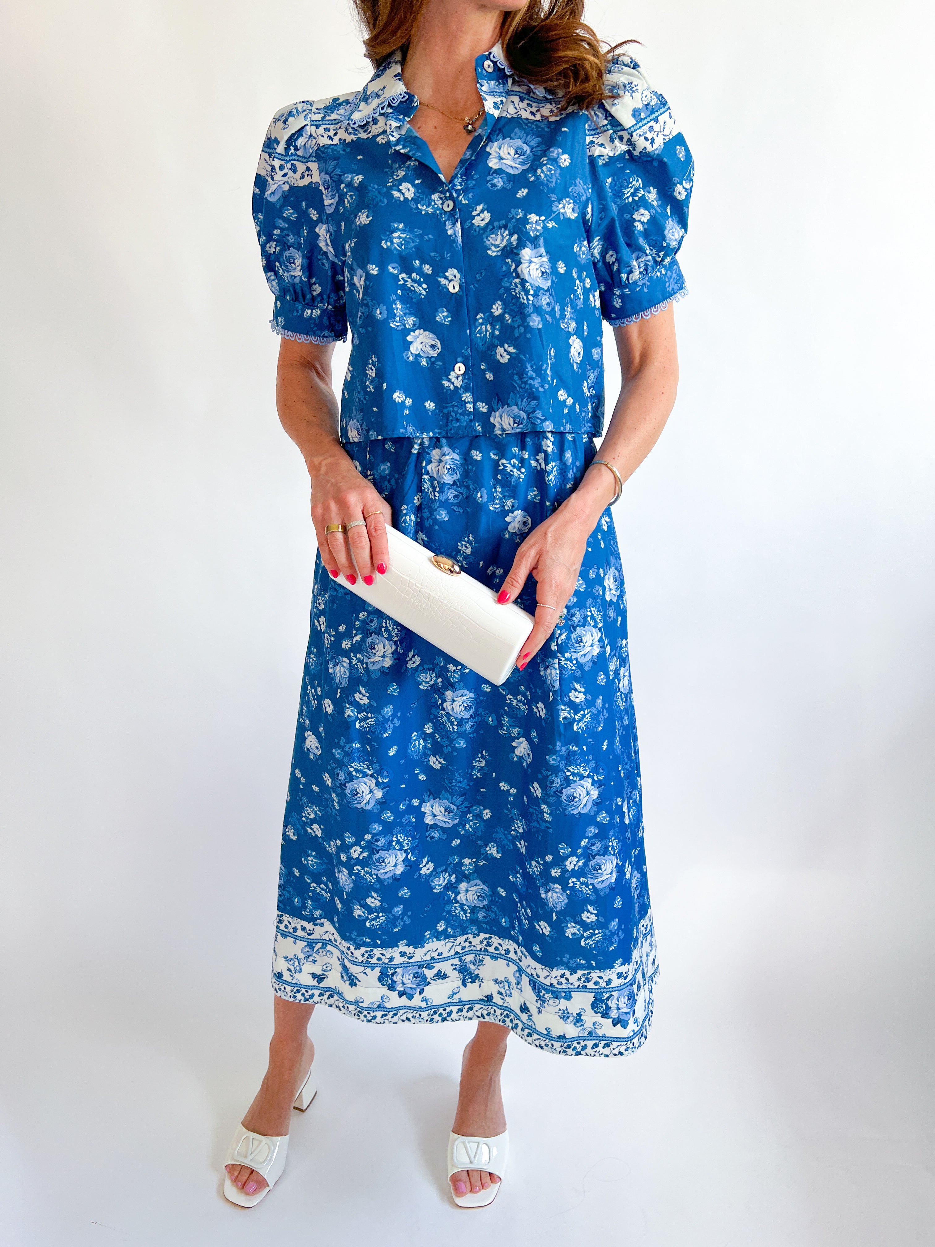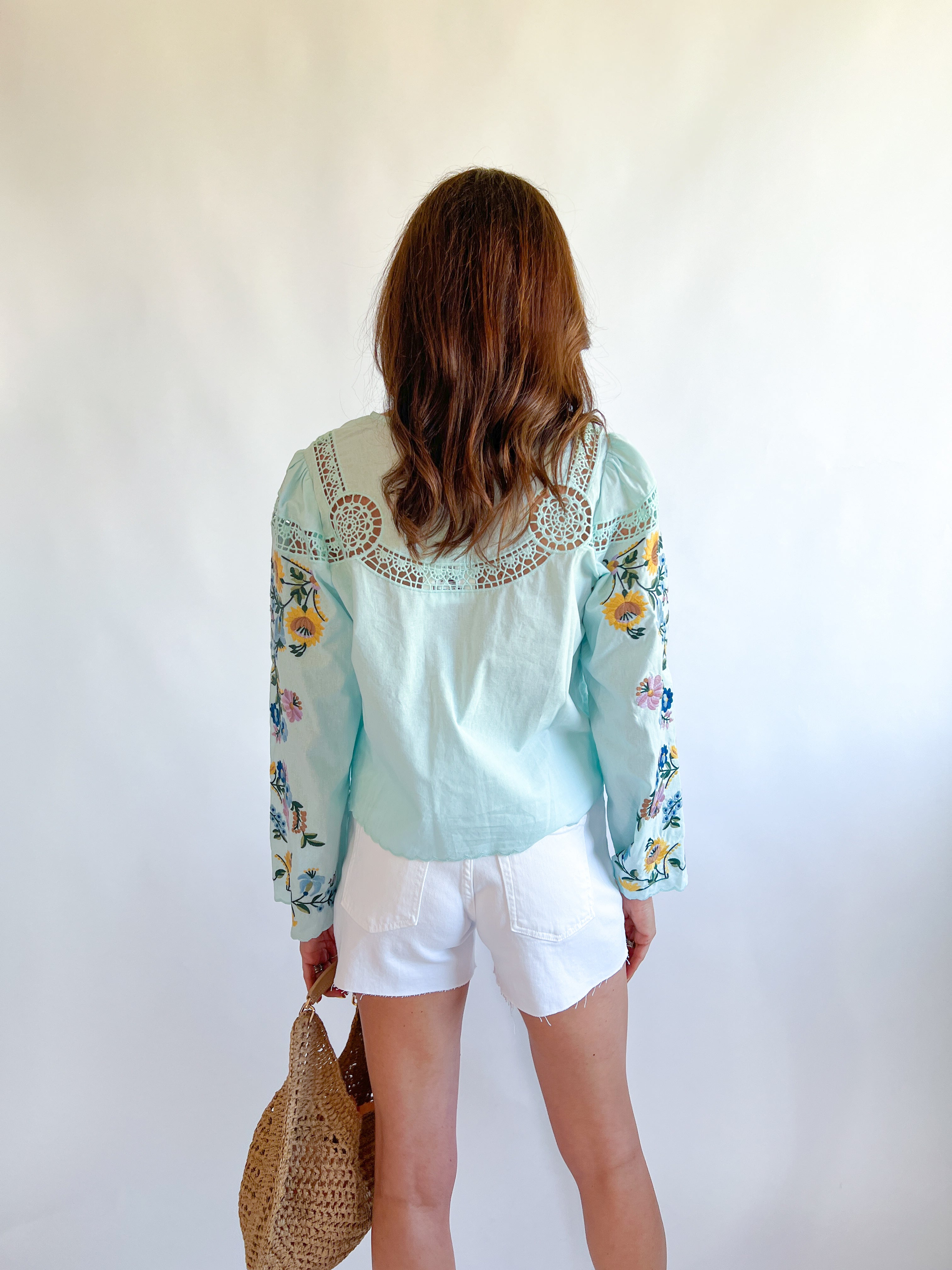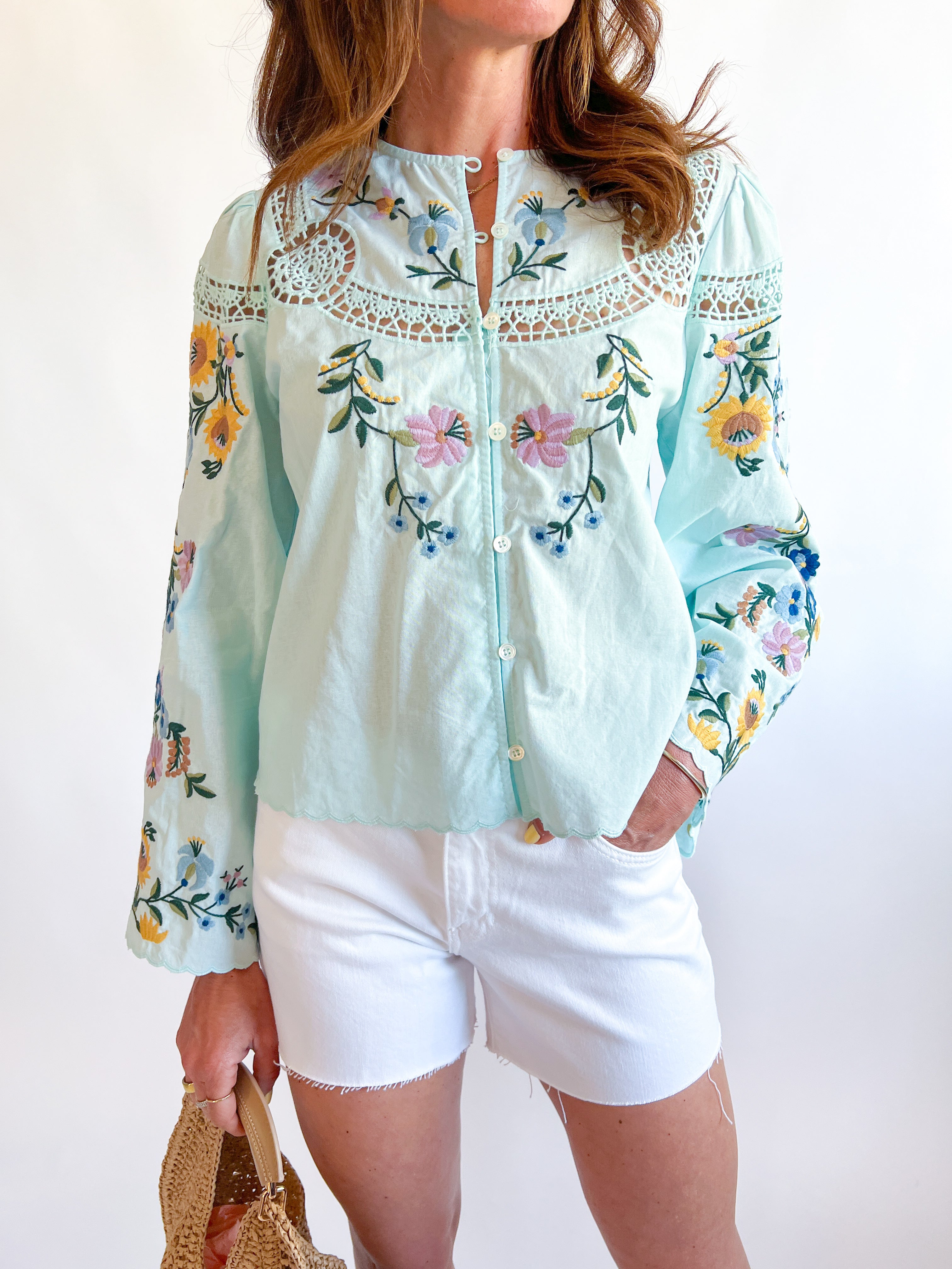 Tropical Hibiscus V-Neck Pintuck Blouse