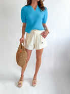The Remy V Neck Top is a versatile wardrobe essential designed for effortless style. Featuring a flattering V neckline, this top offers a refined silhouette that works beautifully for both casual outings and dressed-up occasions. The thoughtful cut provides comfortable movement while maintaining a polished appearance. Perfect for layering or wearing solo, the Remy pairs seamlessly with your favorite bottoms for countless outfit combinations. A timeless piece that brings understated elegance to any collection.