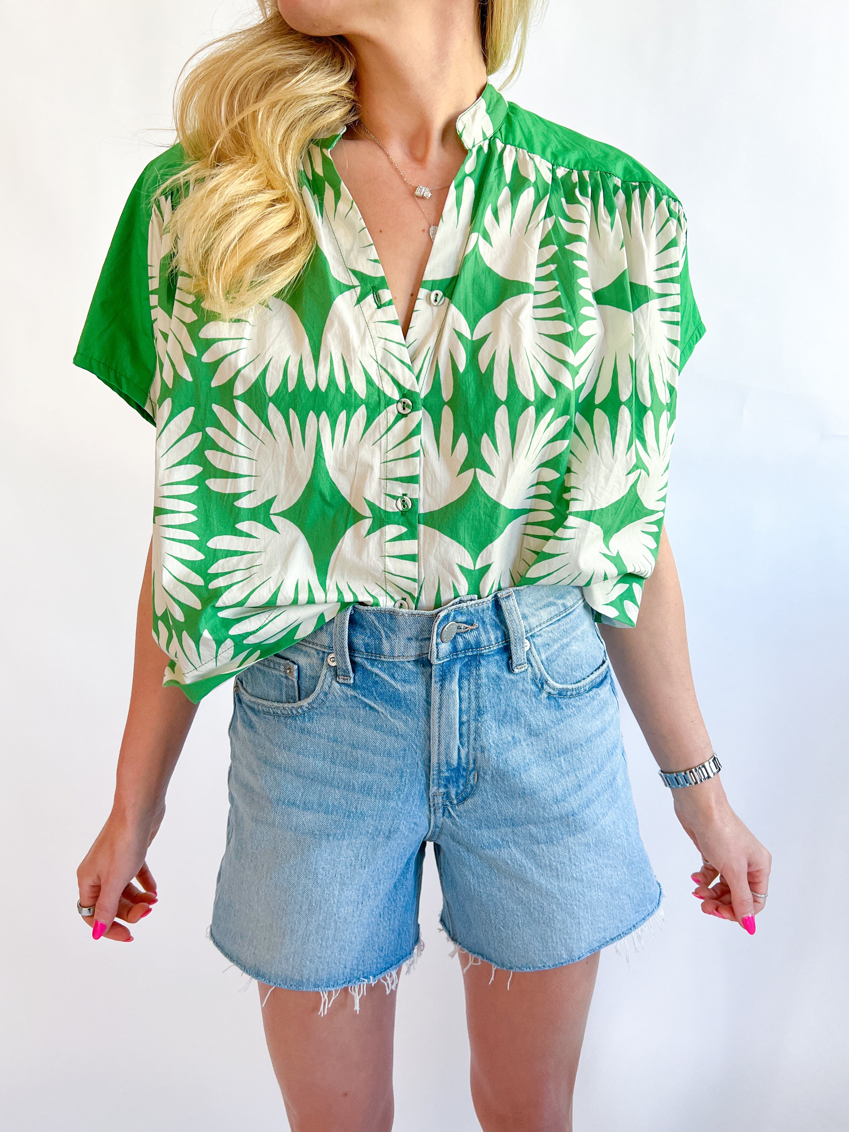 Step into Southern charm with this stunning Viridian Tile Savannah Top! Featuring a gorgeous jewel-tone palette inspired by classic tile work, this piece brings artistic flair to your everyday wardrobe. The sophisticated viridian hues create a fresh, eye-catching look that's perfect for brunch dates, casual outings, or whenever you want to feel effortlessly put-together. Versatile enough to dress up or down, this top is your new go-to for making a stylish statement. Embrace that Savannah elegance and let your personality shine!