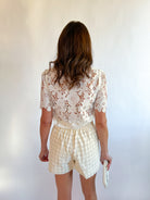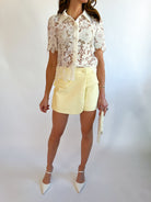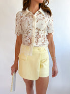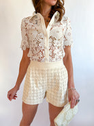 Short Sleeve Lace Button Top