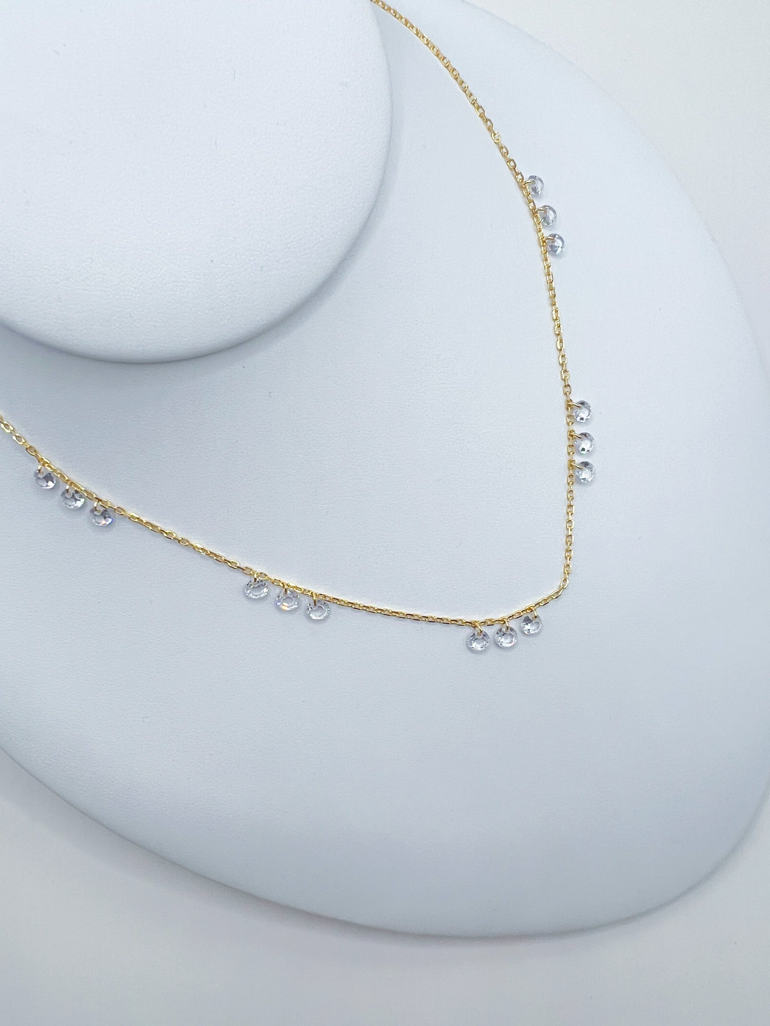 trio drop crystals on gold chain