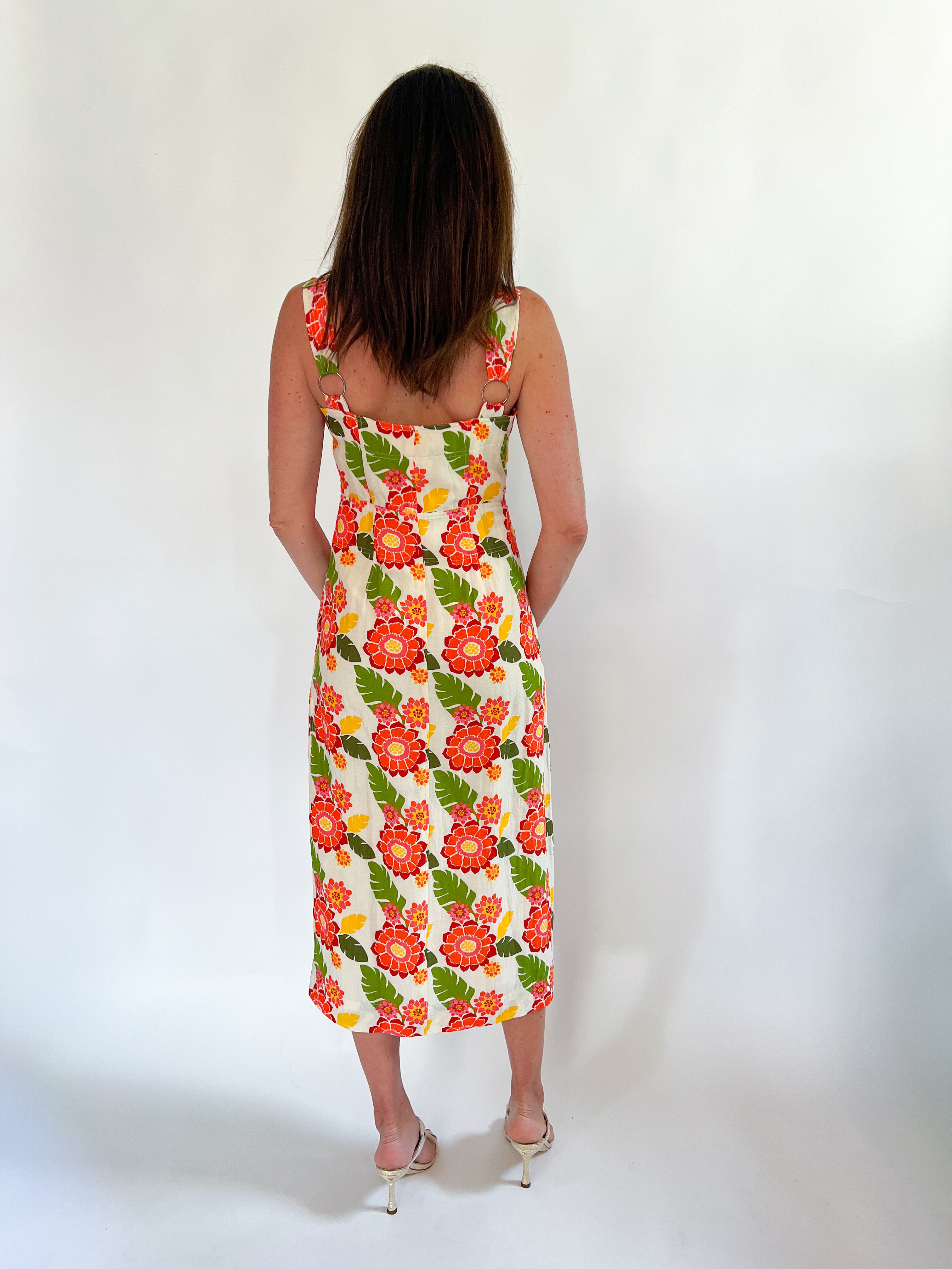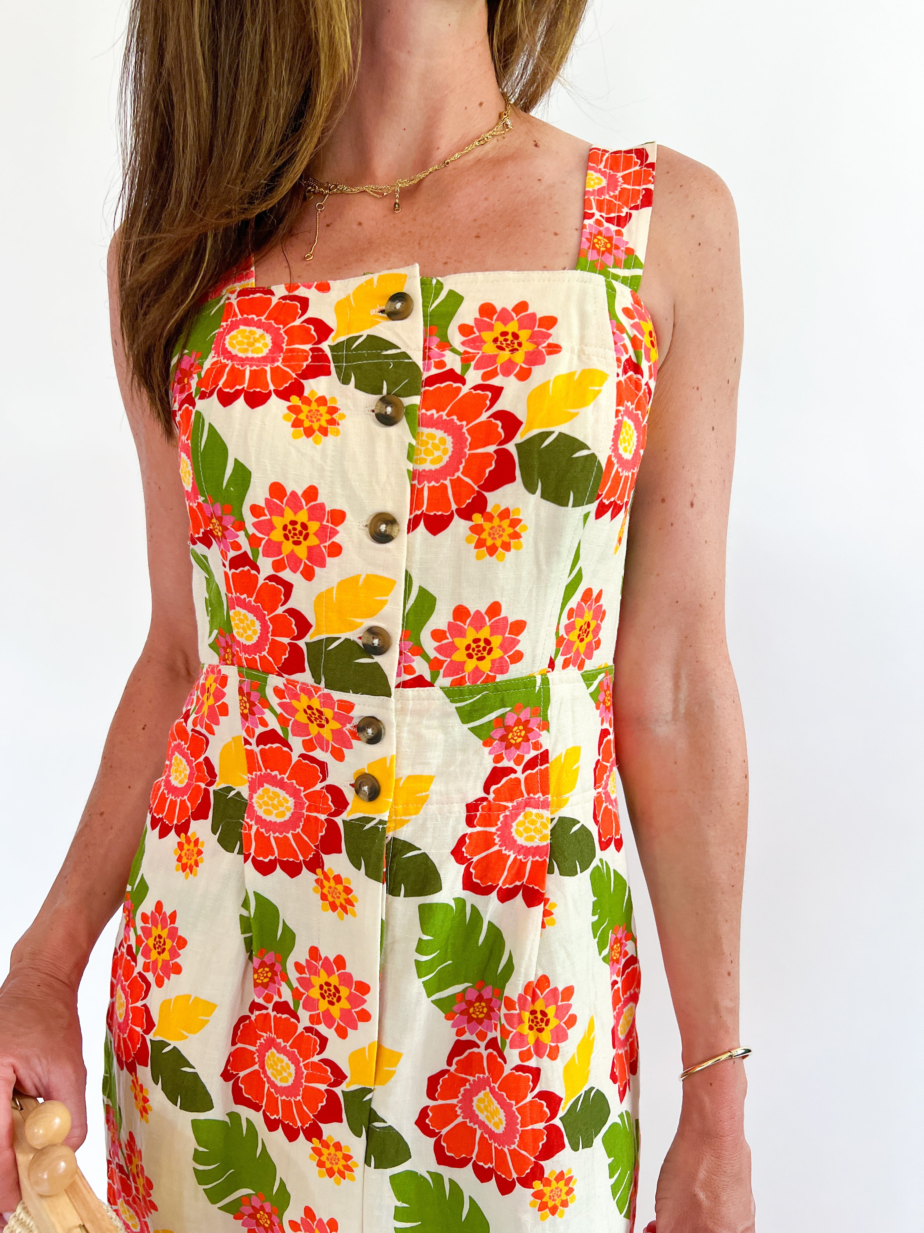 Stand out in our Hales Dress! Made of a comfortable cotton blend, this midi length dress features adjustable straps and a square neckline. The button down front adds a touch of elegance, while the straight skirt with a slit in the back gives room to move. With a beautiful floral print, you'll feel stylish and confident in this must-have dress.
