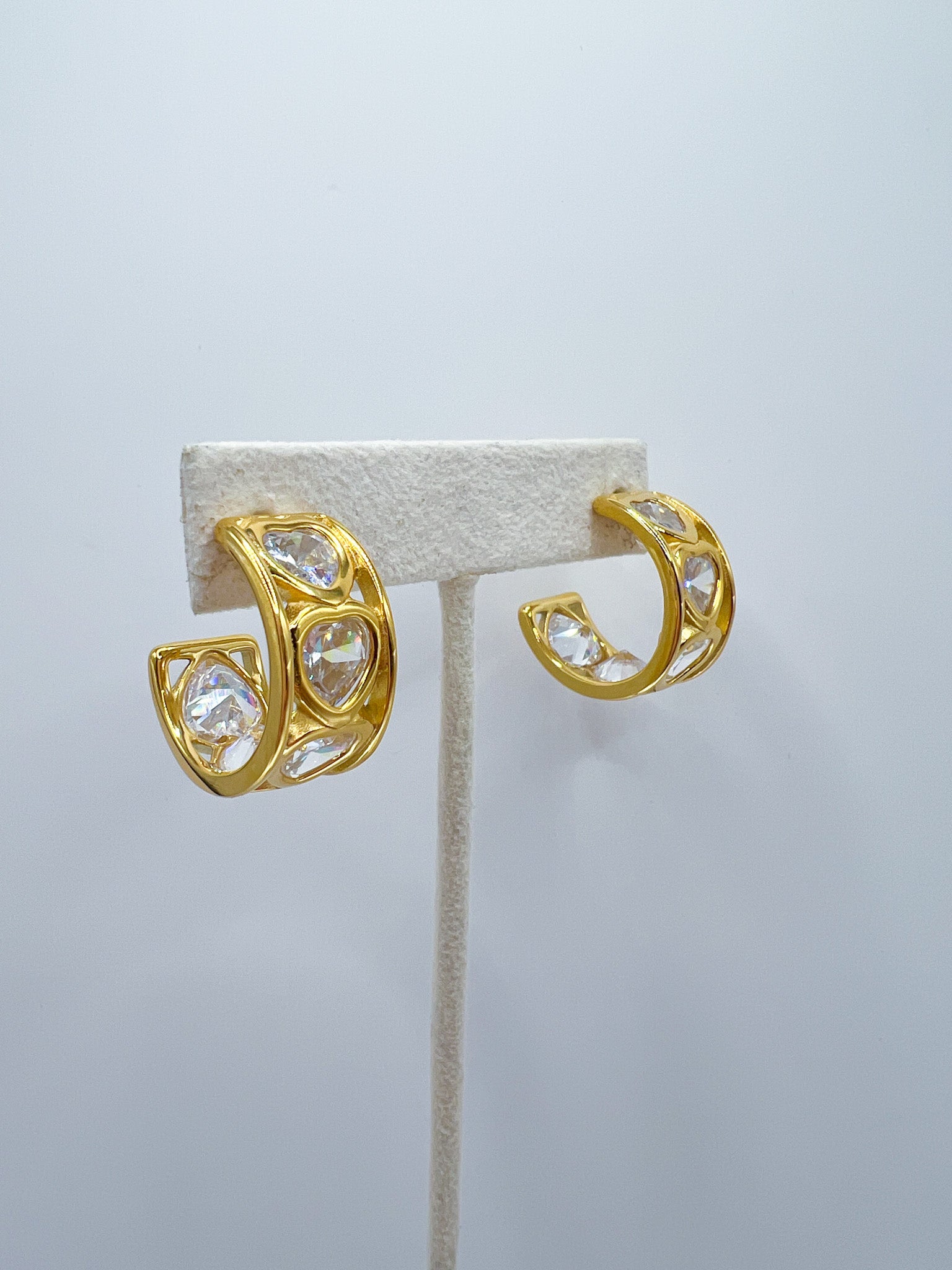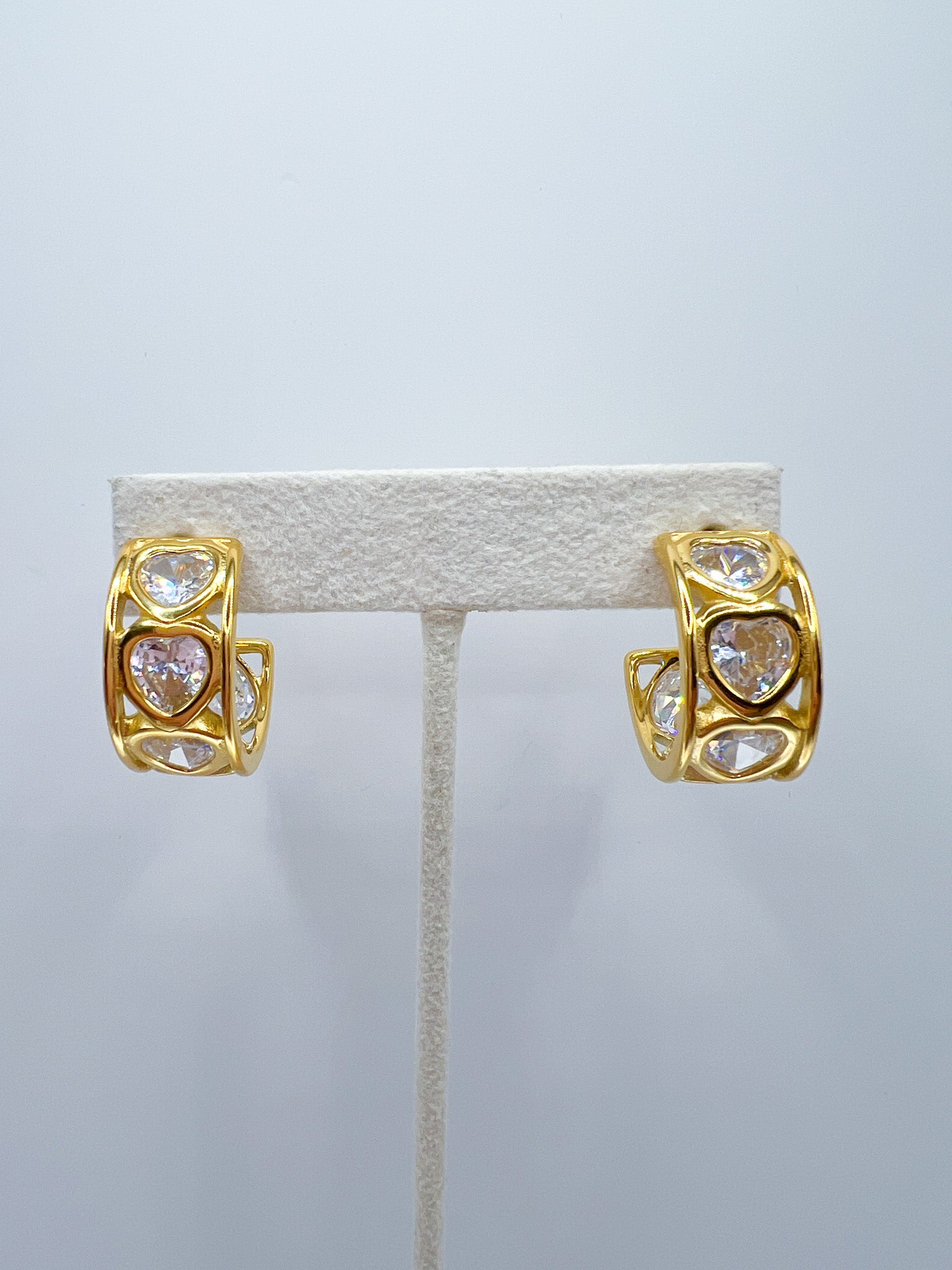 bezel cz heart gold hoop