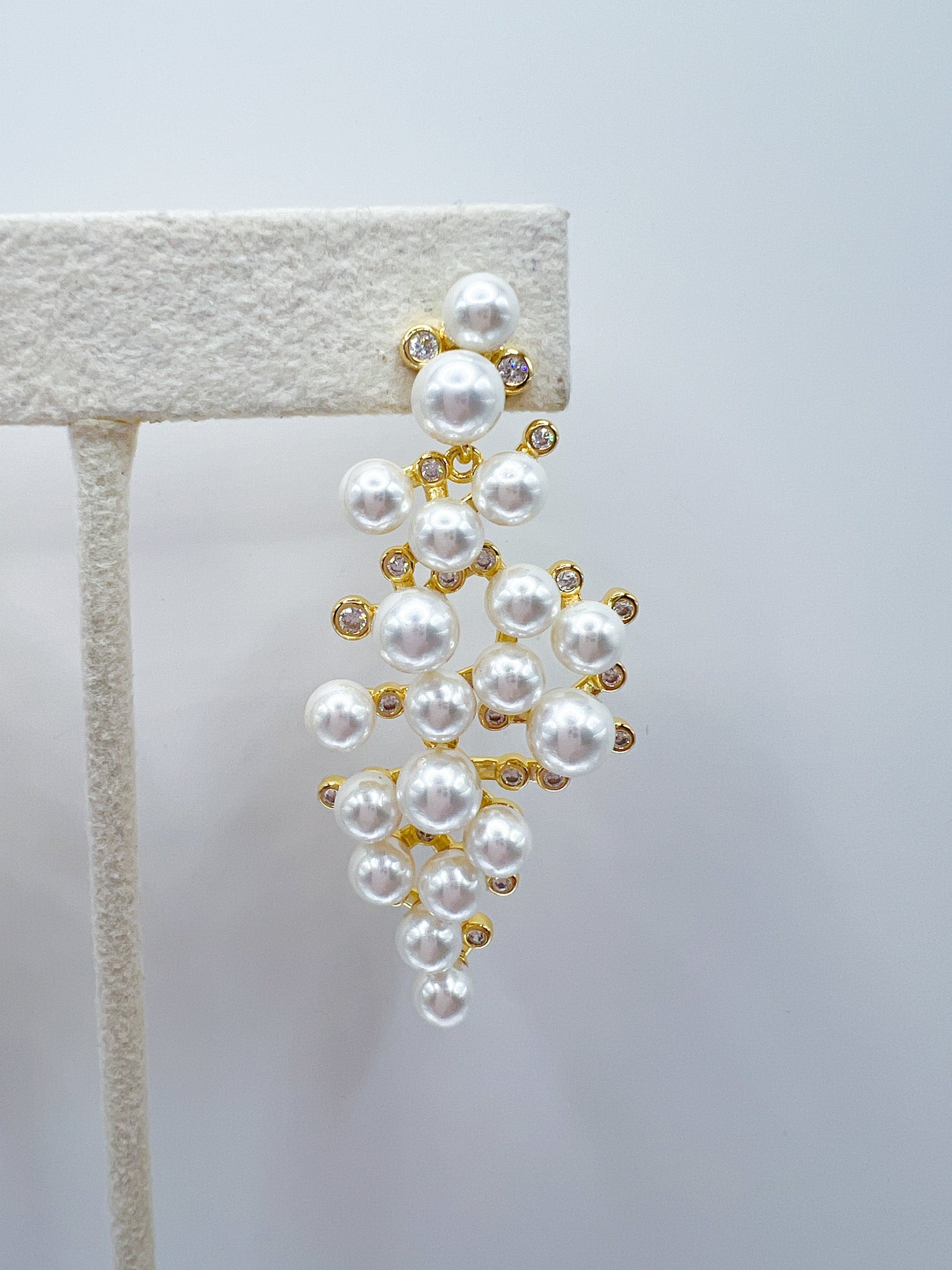 pearl and cz gold statement earring