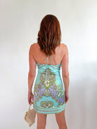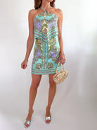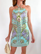 Paisley Satin Tiered Halter Mini Dress