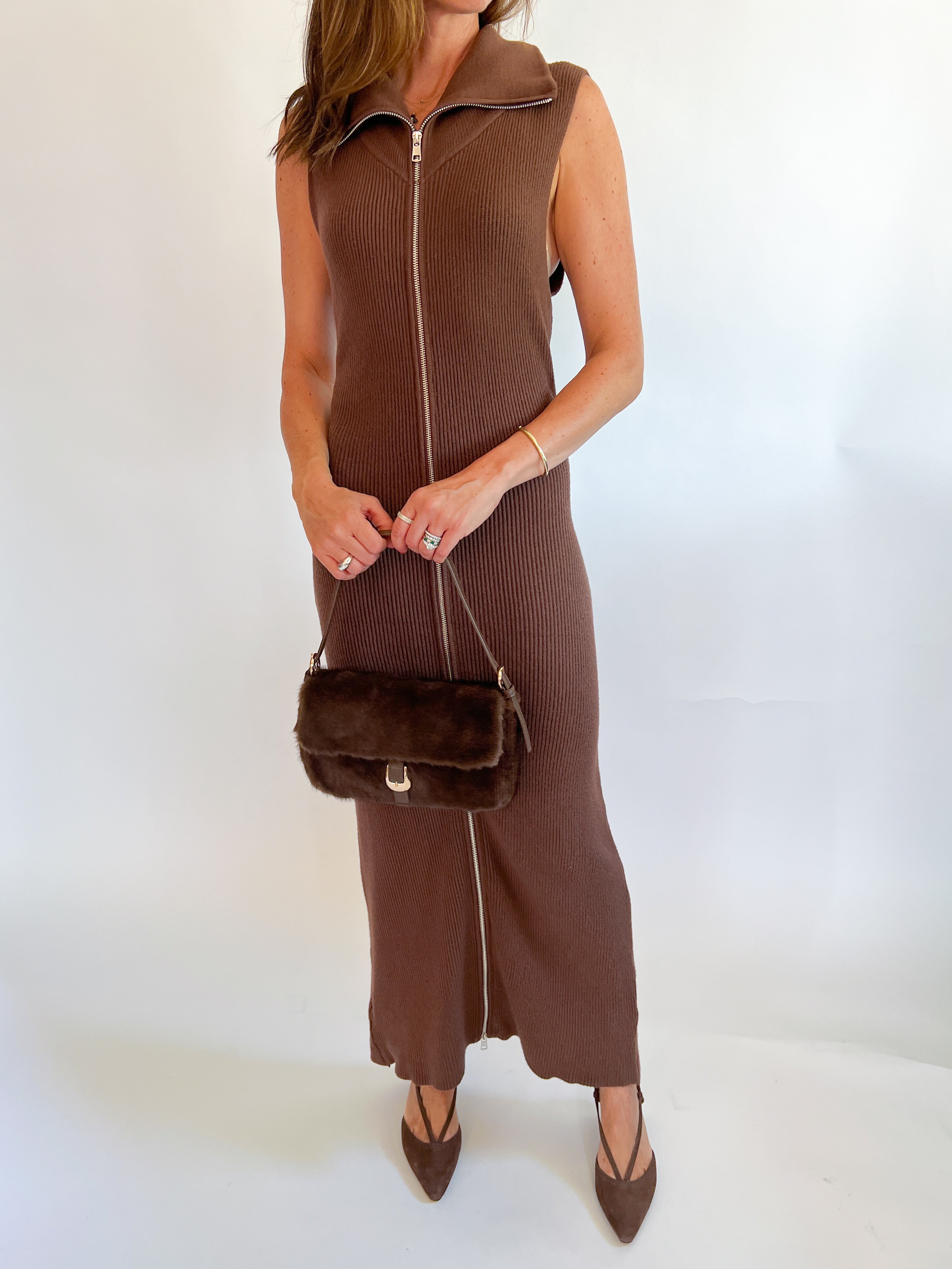 Stay stylish and comfortable in the Paul Zip Up Knit Dress. This sleeveless midi dress features a full zip-up front, making it easy to wear while adding a modern edge to your look. Crafted from soft, stretchy knit fabric, it hugs your silhouette for a flattering fit that moves with you. Perfect for day-to-night wear, this dress combines convenience with chic design for effortless sophistication.