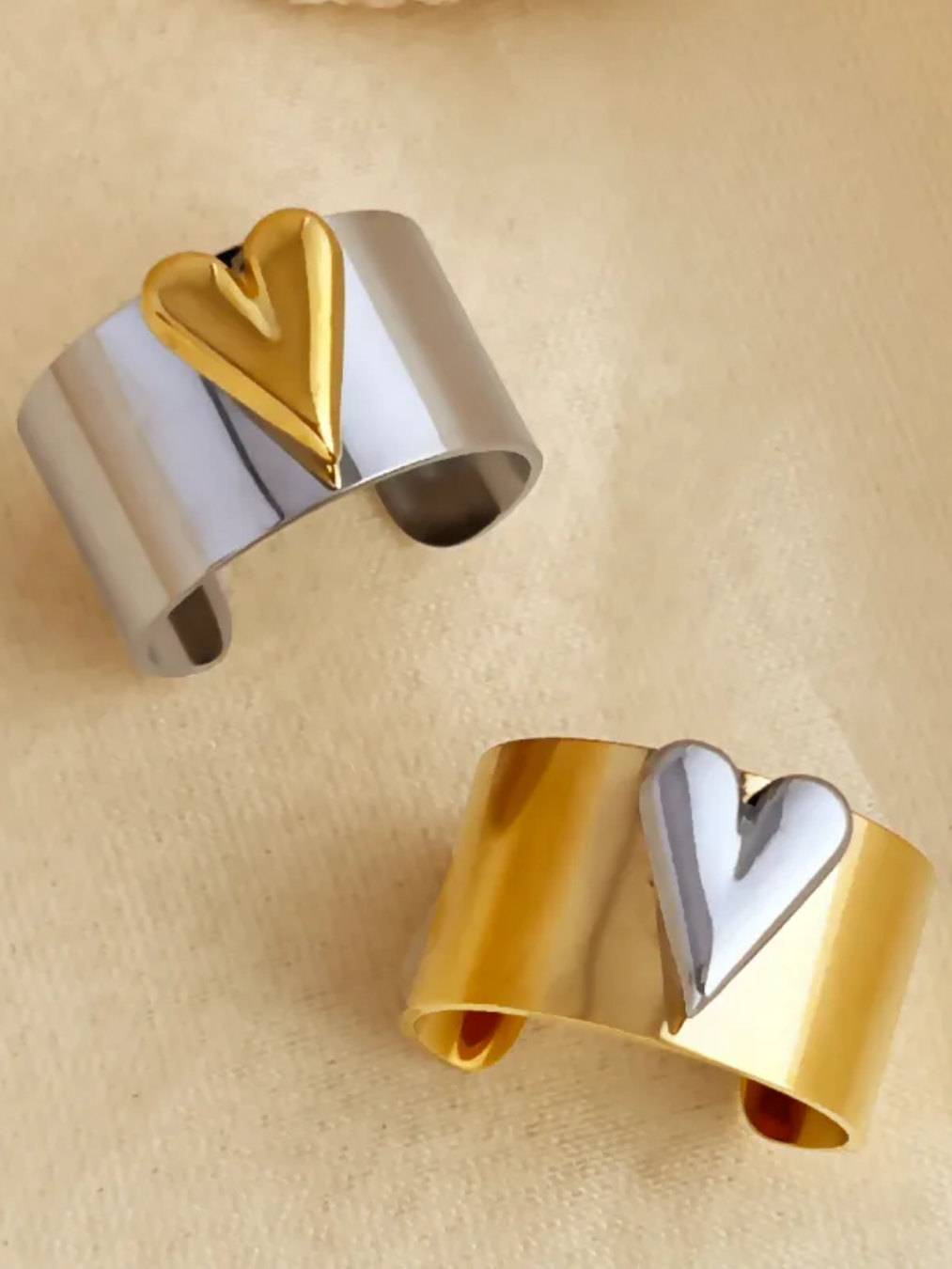 Elevate your everyday style with this stunning mixed metal heart ring! Featuring a charming heart design crafted in both silver and gold, this piece brings the perfect balance of elegance and playfulness to your jewelry collection. The adjustable band ensures a comfortable fit for any finger, making it an ideal gift for yourself or someone special. Whether you're dressing up for a night out or adding a touch of sparkle to your casual look, this versatile ring is sure to become a go-to favorite. Celebrate love and self-expression with every wear!