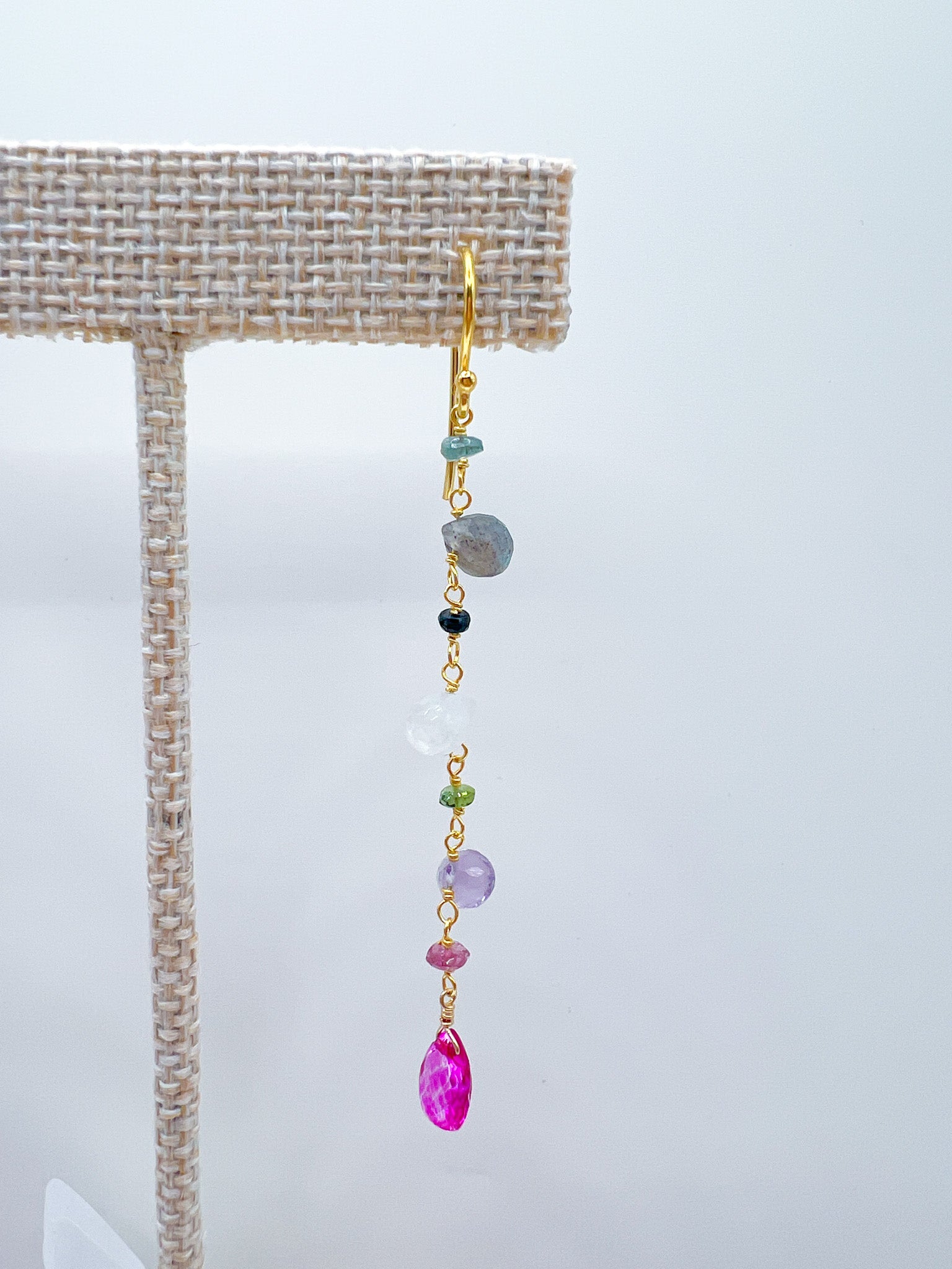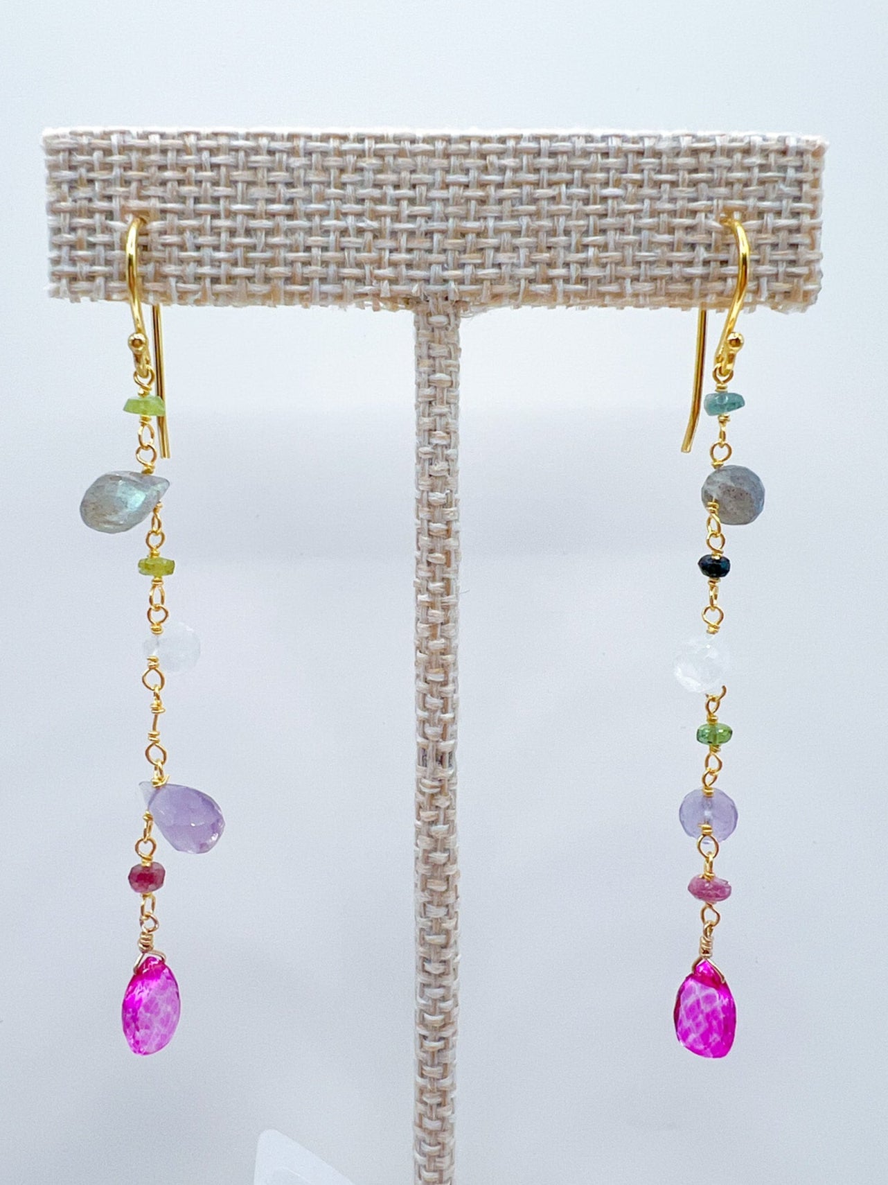 Add a splash of color with the Wildflower Dangle Earrings, featuring vibrant Pink Topaz and a mix of colorful stones for a lively, joyful look.