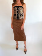 This Sweater Knit Tube Top combines comfort and style with its soft, cozy fabric and eye-catching front button detail. Perfect for layering or wearing on its own, it adds a playful and fashionable edge to any outfit.