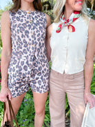 This stylish Leopard Vest is part of an eye-catching matching set designed to elevate your look. Featuring a button-front closure, it offers both ease and flair, making it a perfect choice for adding a bold, fashionable touch to any outfit.