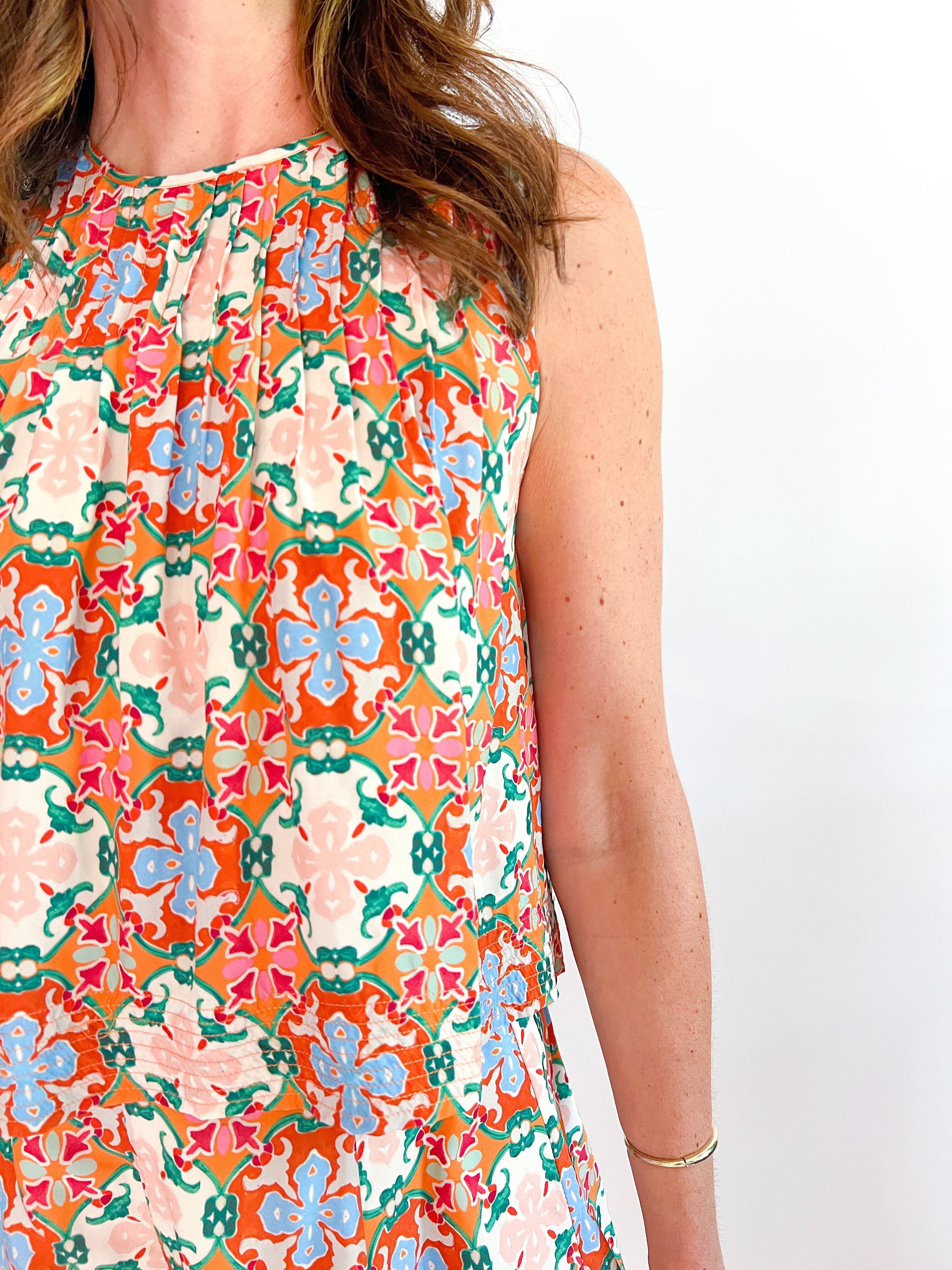 The easy-to-wear swing top features pretty pintuck pleats and a flattering A-line shape. This summer, Letta comes in our architectural Mosaic print, featuring a sun-drenched Mediterranean color palette. Pair the popular silhouette with our matching Miles Short for a breezy summer look that’s easy and elegant.