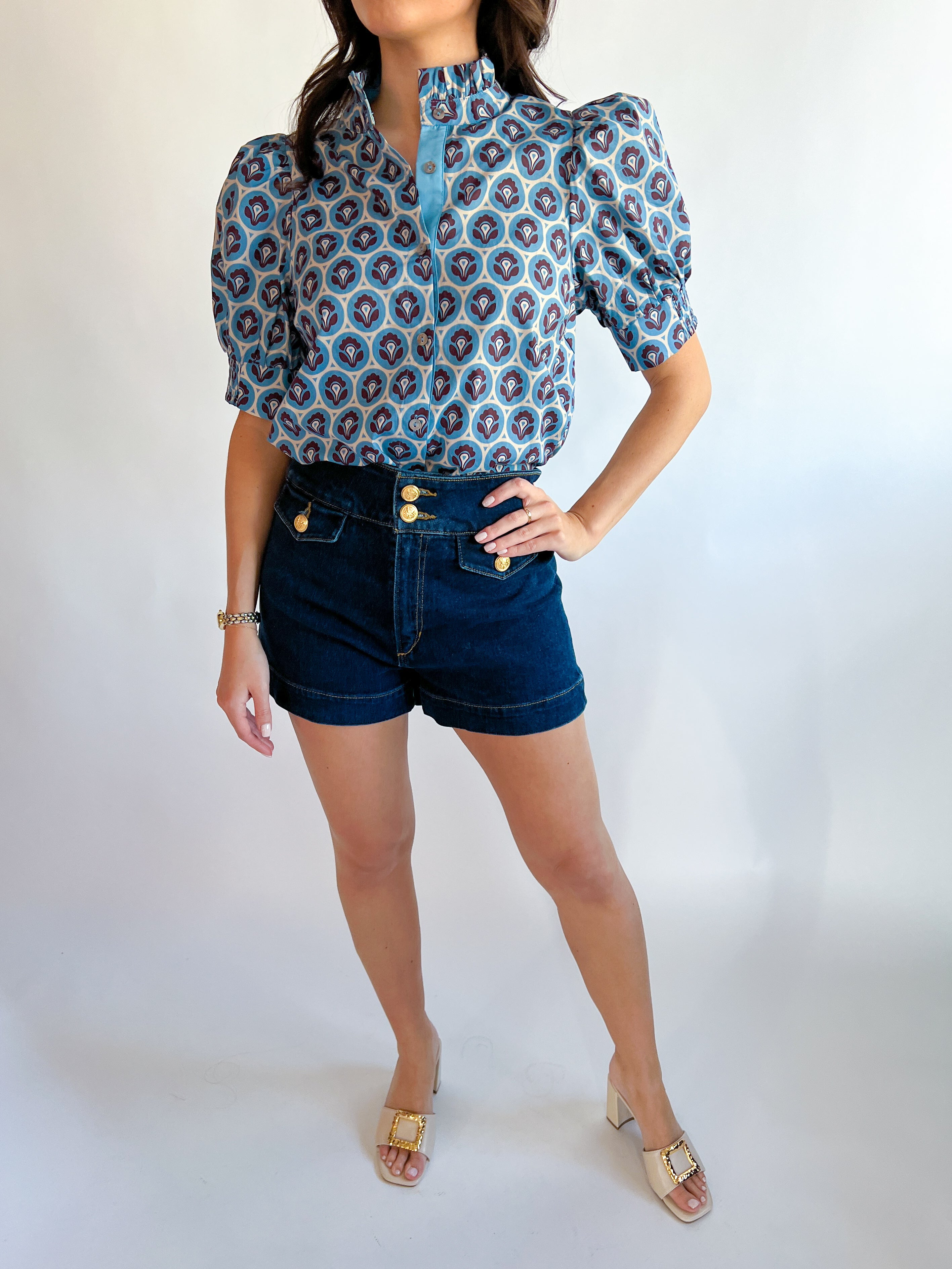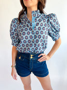 Say hello to the Geometric Short Puff Sleeve Top—your new wardrobe essential! This eye-catching piece features a bold geometric print that adds instant personality to any look, while the charming short puff sleeves bring a touch of playful femininity. Perfect for layering or wearing solo, this versatile top transitions seamlessly from casual daytime wear to evening outings. The flattering fit and modern design make it easy to style with your favorite bottoms, whether you're going for chic or laid-back vibes. Grab yours and get ready to express your unique style!