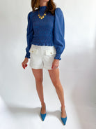 The Willow Long Sleeve Top shines with its playful puff sleeves and stylish gathered cuffs. Its high crew neck and smocked detailing add a trendy, flattering touch you'll love to wear.
