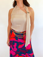 - Wrap Around Tie Detail With Adjustable Gold Buckle