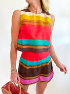 The Blanche Grotto Short features a fixed waistband that sits comfortably at your natural waist, with elastic in the back for a perfect fit every time. It includes a convenient fly zipper with hook and bar closure for easy wear. Showcasing a stylish placement print and a breezy 1.75" inseam, these shorts are perfect for warm days when you want to stay cool and look effortlessly chic.