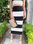 The Summer White Midi Skirt offers a sleek, bodycon fit crafted from soft knit fabric for all-day comfort. Its stylish striped pattern adds a fresh, modern touch, and it pairs effortlessly with the matching top to create a coordinated, eye-catching outfit perfect for sunny days and warm nights.
