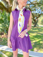 Get ready to turn heads in the Collared GAMEDAY Mini Dress! This fun, sleeveless dress features a chic collared neckline and a button-front closure for easy wear. With built-in shorts and handy chest pockets, it’s perfect for staying comfortable and stylish all game day long.