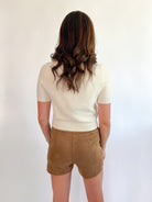 Polished yet playful, the Faux Suede Modern Shorts are crafted from a soft faux suede with a structured, tailored finish. Designed with two side pockets, a clean front, and a secure double hook-and-zipper closure, they offer a refined look with everyday ease.