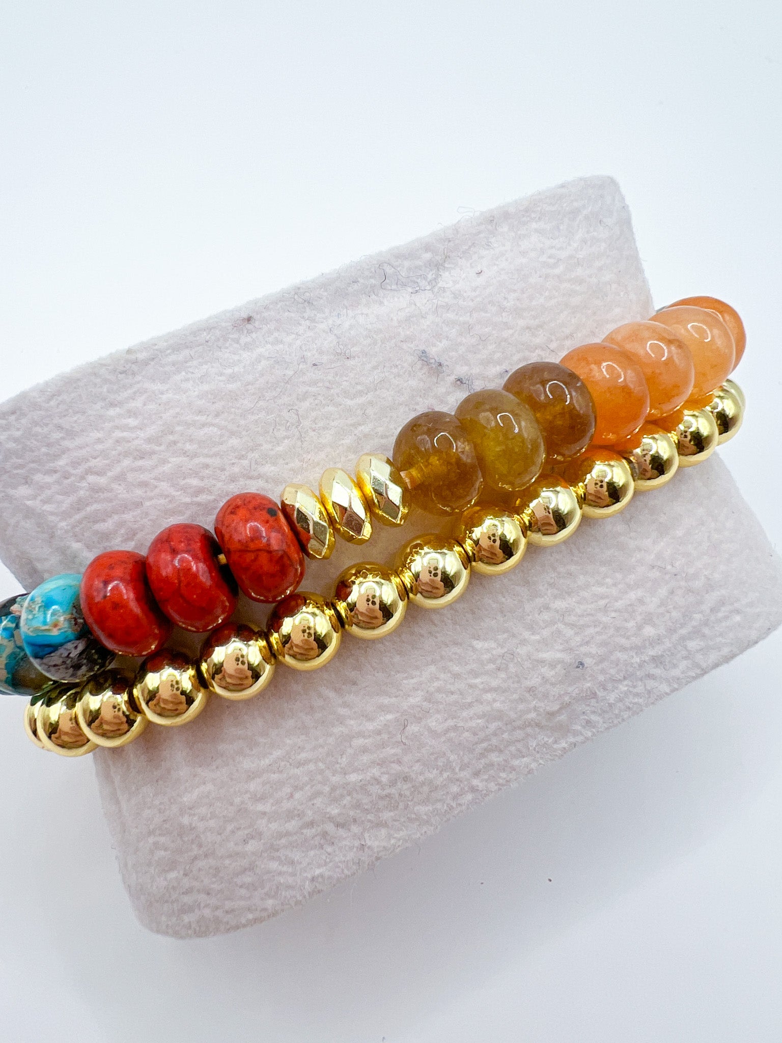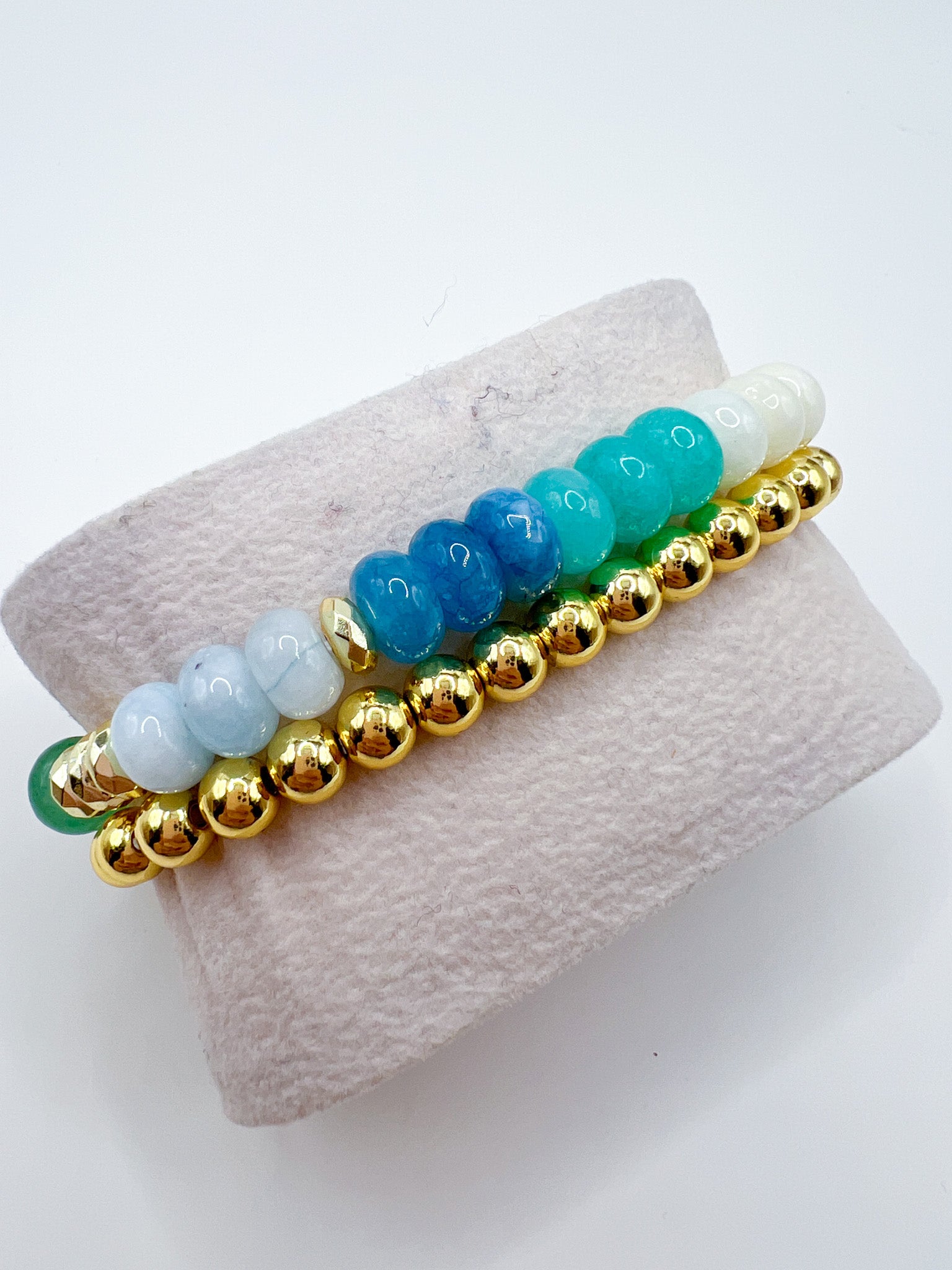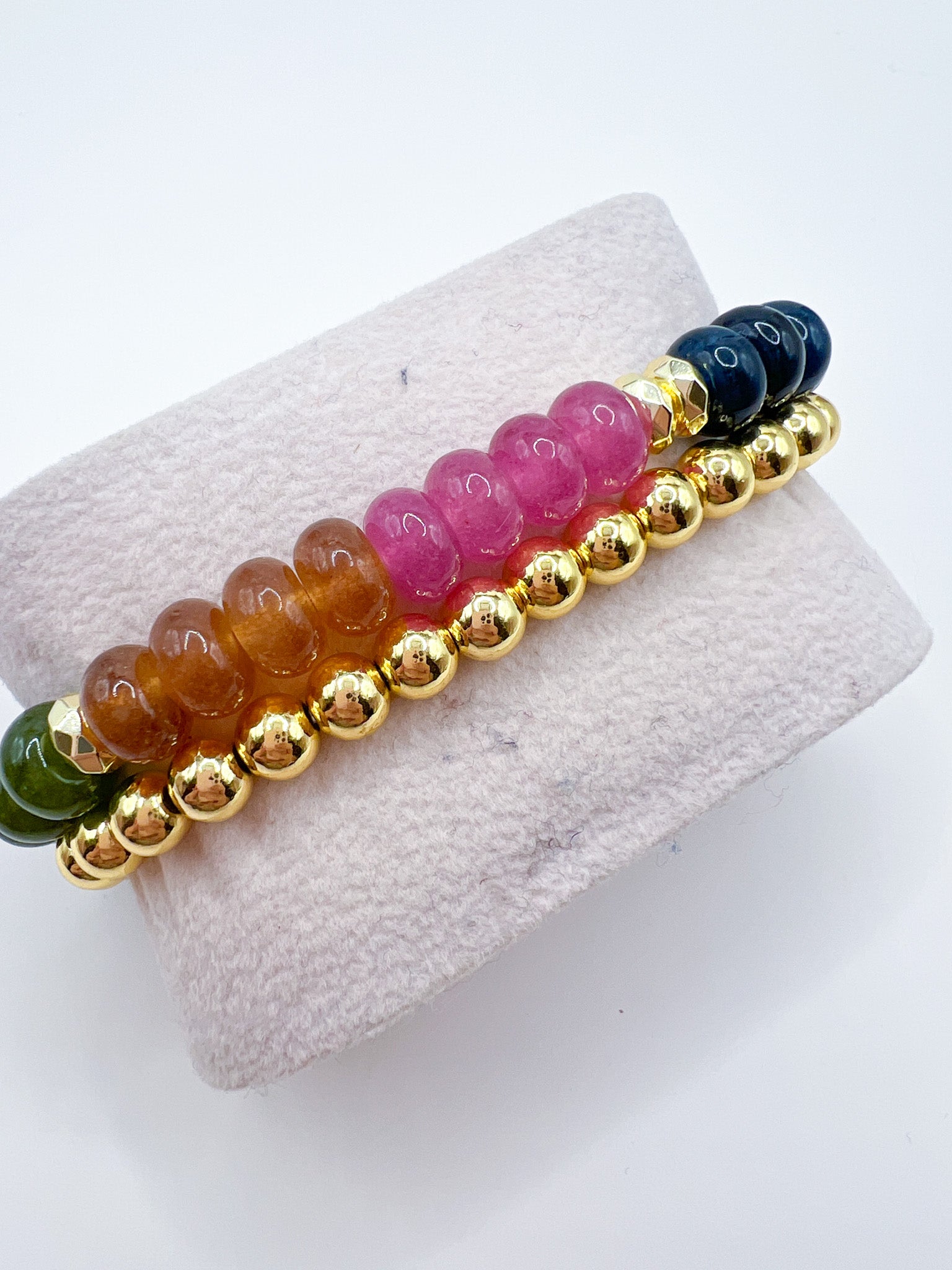 The Jamie Bracelet Set combines 18k gold plating with natural stone beads on stretchy bands for a stylish, easy-to-wear look.