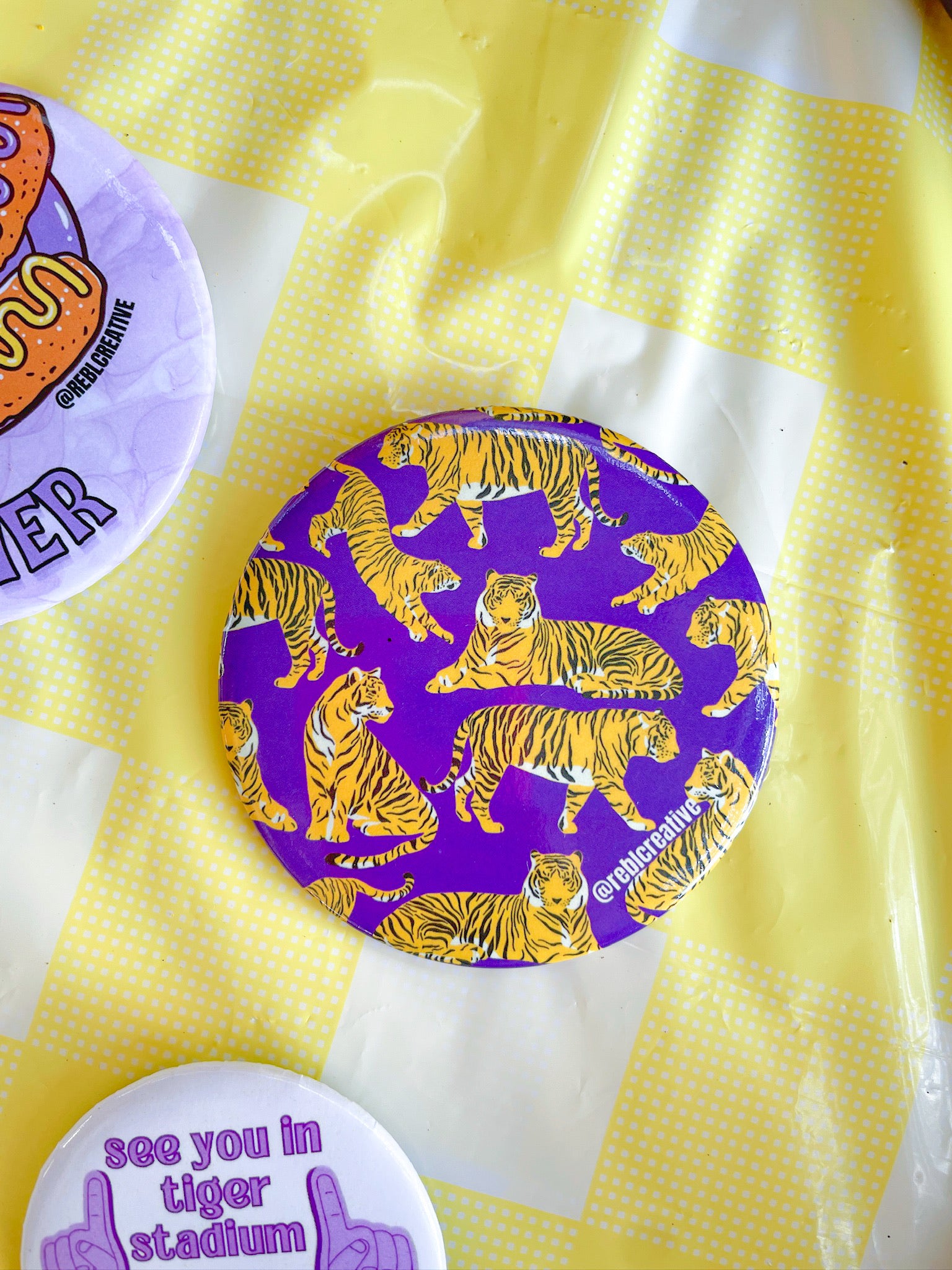 Show your team spirit with these fun LSU Game Day Buttons! Perfect for cheering on your favorite team, these buttons add a playful and spirited touch to any game day outfit. Easy to wear and share, they’re a must-have for every LSU fan!