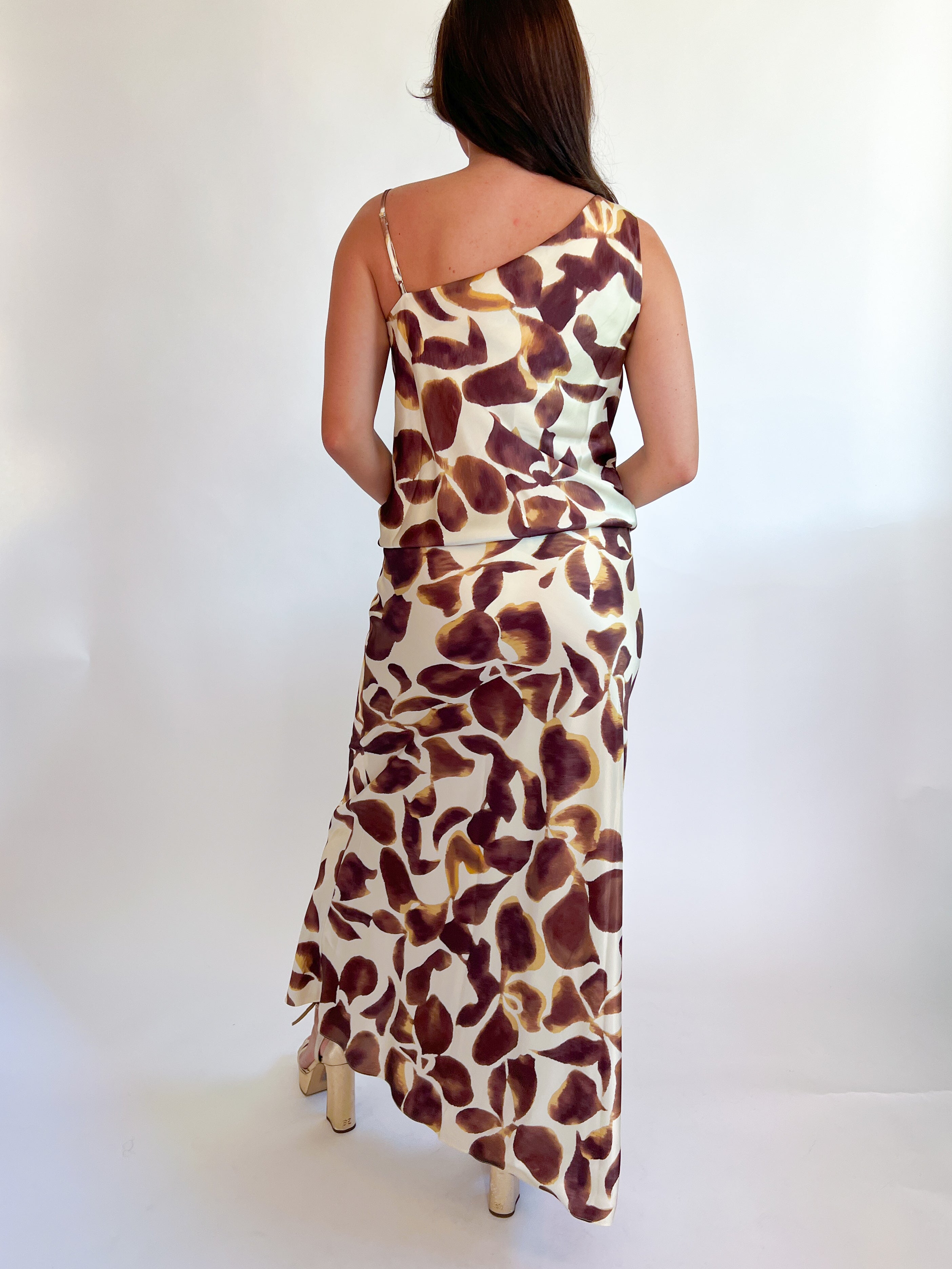 Embrace the season with the luxurious Mae satin tank. It showcases an asymmetrical cowl neckline with an adjustable strap for a perfect fit. Style it with your favorite Rails jeans or coordinate with the matching Romina Skirt. Available in the rich Espresso Lily pattern.