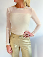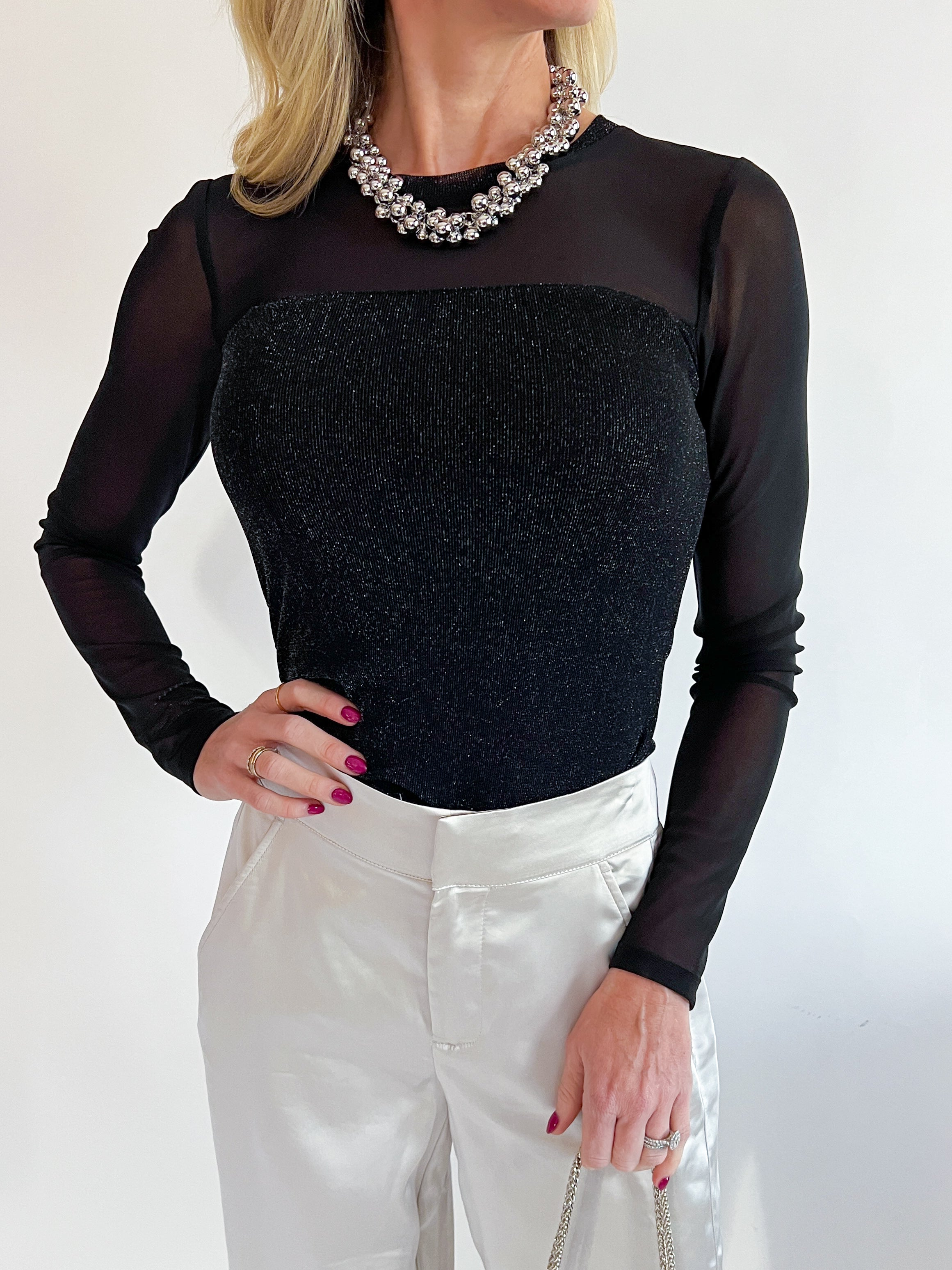 Get ready to dazzle in our Colleen Mesh Sparkle Long Sleeve Top! This stunning piece combines sheer mesh with sparkling details to create a look that's both elegant and eye-catching. The long sleeves offer sophisticated coverage while the delicate sparkle accents add just the right amount of glamour and dimension. Perfect for special events, nights out, or whenever you want to feel absolutely radiant, this top brings instant pizzazz to your wardrobe. Layer it over a slip or camisole for a chic, modern aesthetic that turns heads. Whether you're celebrating a milestone or simply treating yourself, this showstopper deserves a spot in your closet. Snag it now and prepare to shine!