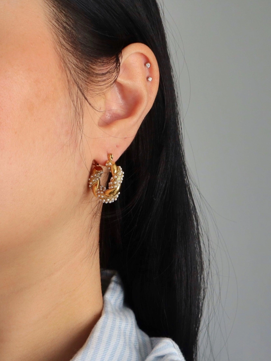 Nolita Hoops | Pearl Gold Twisted Hoops