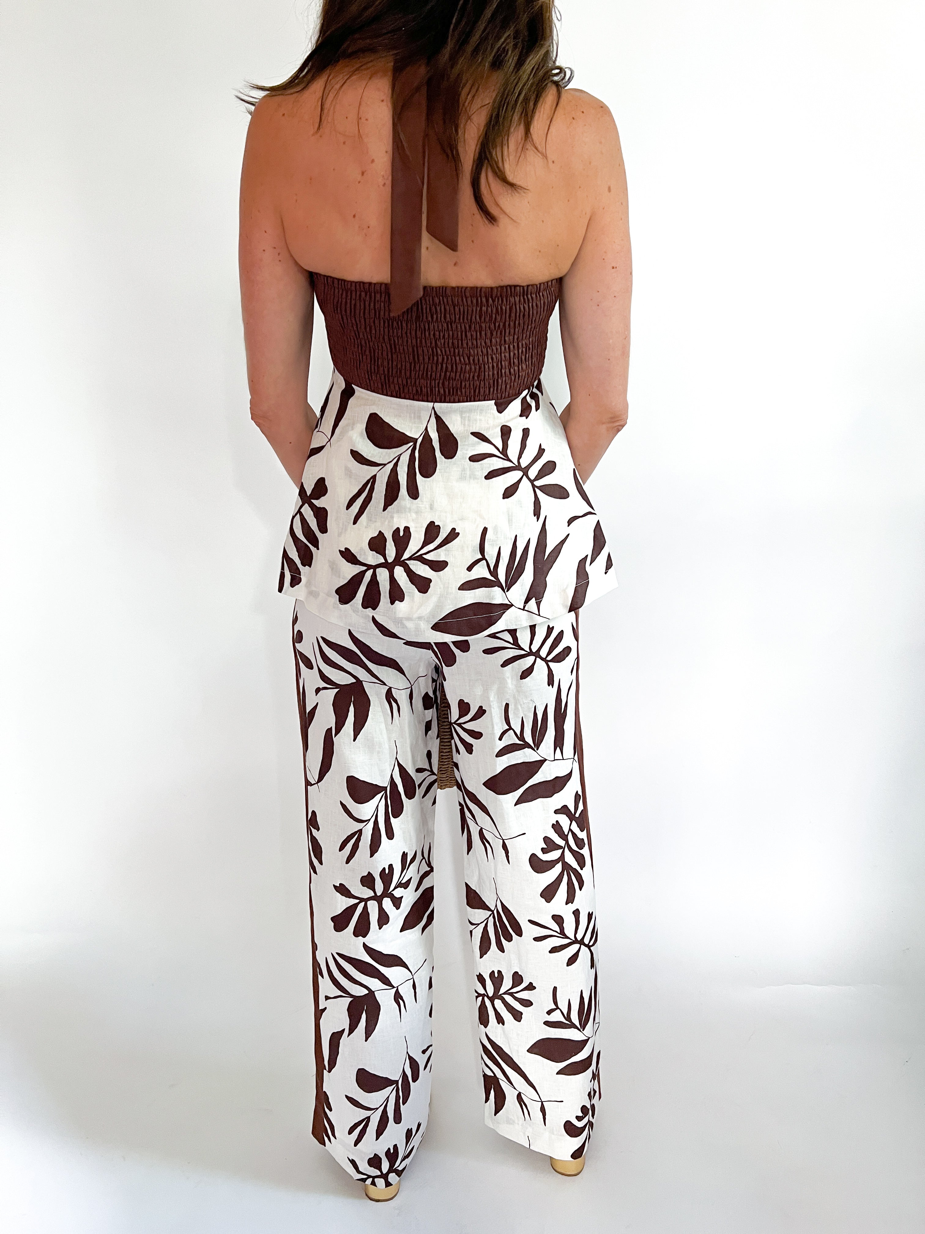 The Parker Top features a flattering v-neckline with a playful back neck tie closure and a smocked back panel for a comfortable, adjustable fit. Showcasing a vibrant foliage print with stylish contrast detailing, it pairs perfectly with matching pants for a fresh, coordinated look that’s ready to brighten your day.
