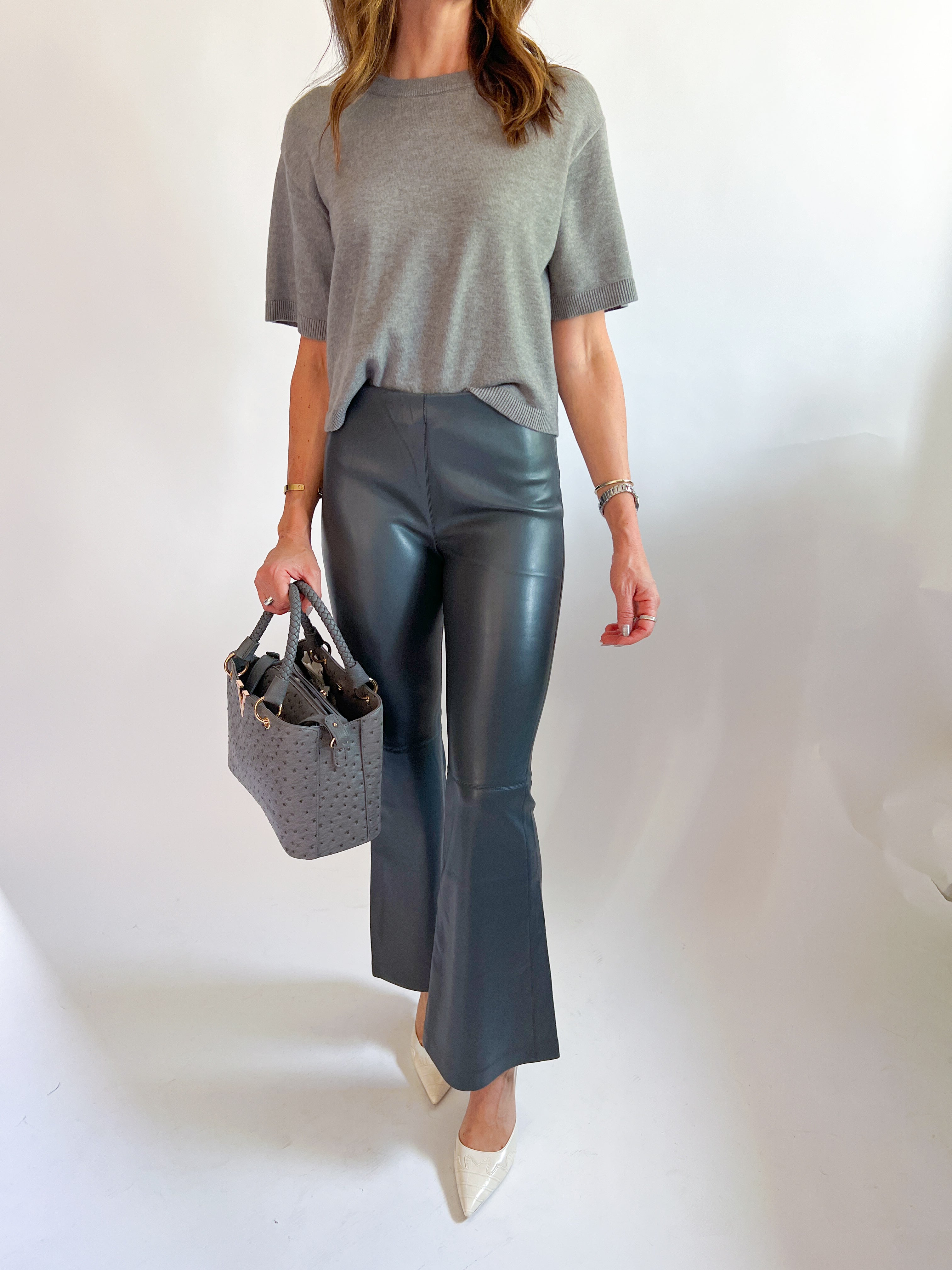 Step out with confidence in the Poppy Leather Flare Pants. Crafted for a flattering fit, these pants combine sleek leather texture with a stylish flare silhouette, adding a touch of edge and movement to your look. Perfect for dressing up or down, they bring a bold yet approachable vibe to any outfit.