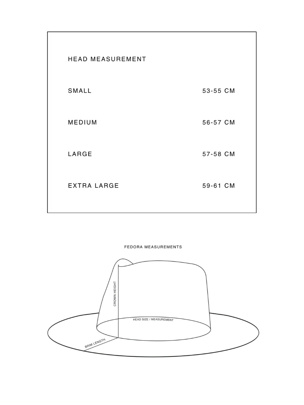 An edgy monochromatic take on the classic fedora. The structured fit creates a beautiful modern shape while staying true to the timeless design of our classic fedora. This effortless piece can easily be worn year-round and is meant for traveling with you wherever you go.