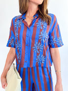 Add a splash of fun to your wardrobe with the Striped Roxy Shirt. Its bold stripes and comfortable fit make it perfect for sunny days and casual outings. Easy to pair with your favorite jeans or shorts, this shirt brings a playful yet polished touch to any look. Brighten your style and feel confident wherever you go!