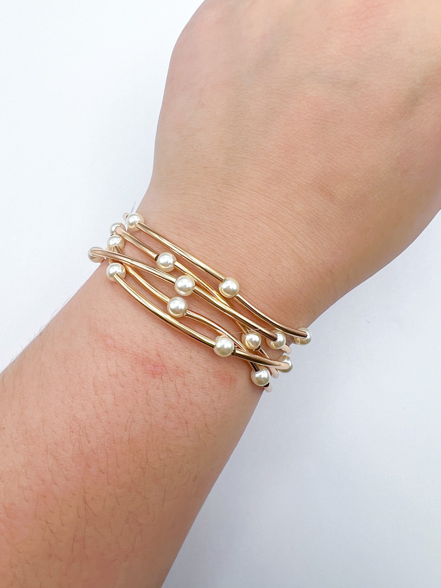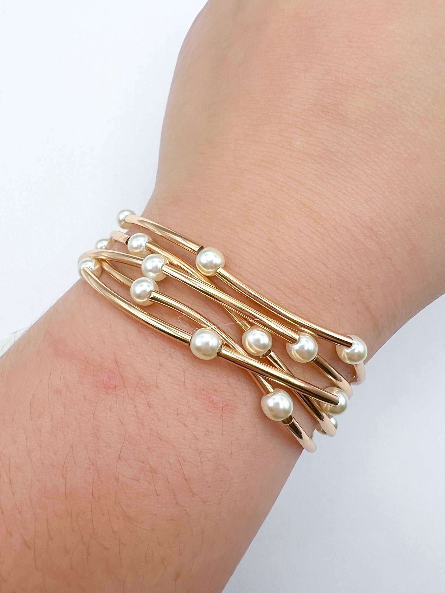 Get ready to elevate your style with our Pearls and Gold Silver Tubes classic bracelets set!