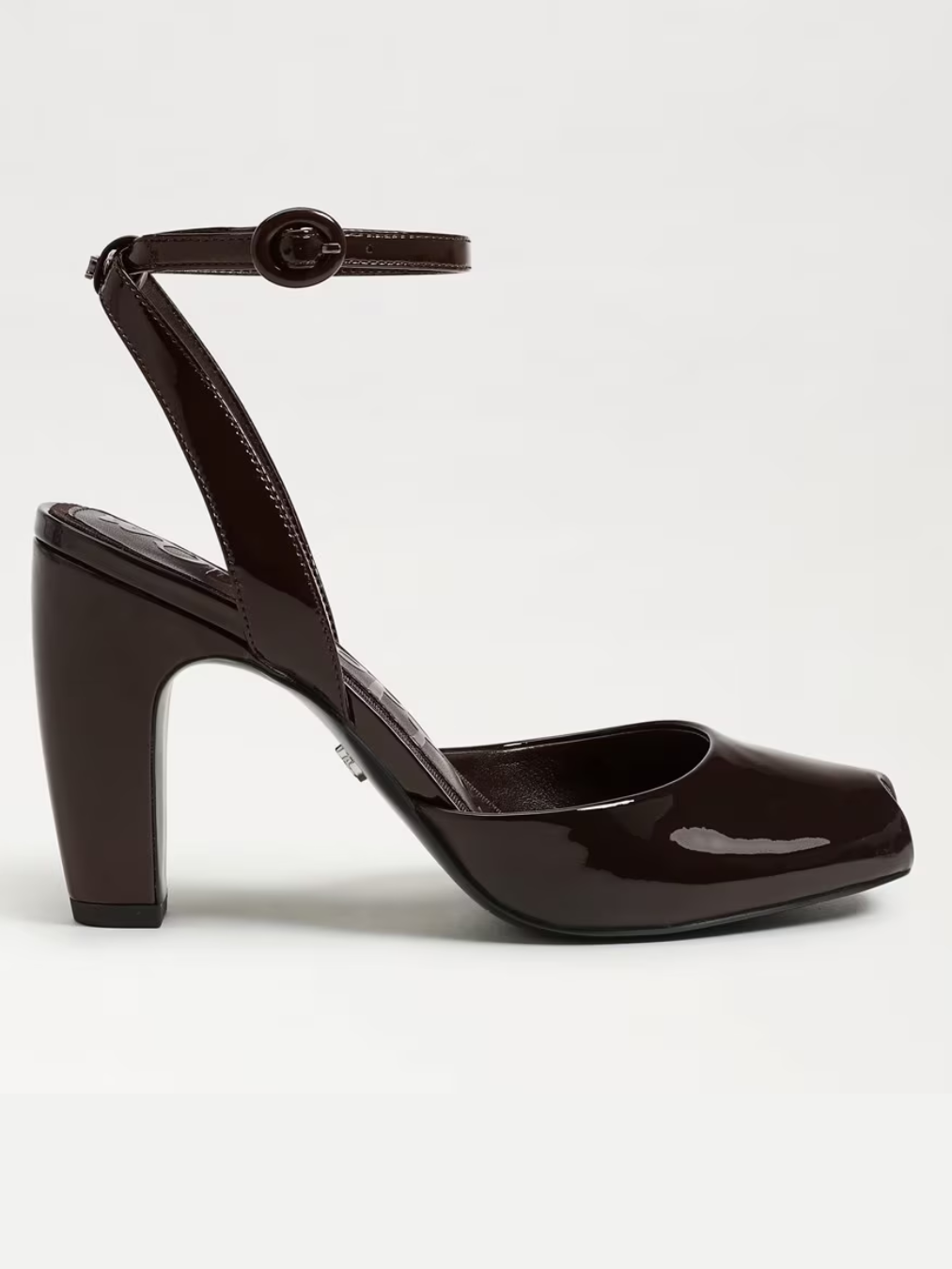 Retro-inspired with modern edge, the Wrenna heel features a vintage peep toe and ankle strap in a standout textured finish.